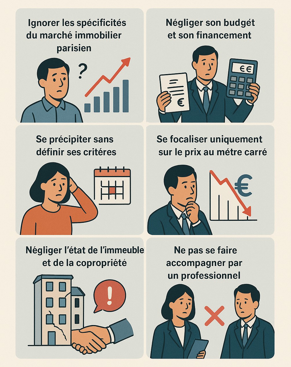 Acheter un bien immobilier à Paris est un projet excitant, mais complexe. Entre la spécificité du marché, les disparités entre quartiers, les coûts annexes et les pièges liés à la précipitation ou à la négociation, il est facile de commettre des erreurs qui peuvent coûter cher, tant financièrement que sur le plan de la sérénité.