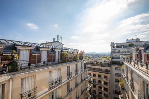Triangle d'Or de Boulogne, à 2 pas du marché Escudier. Derniers étages en duplex, vue dégagée, bel extérieur, très calme et en excellent état.